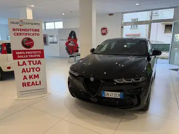 Dotazione: Cambio automatico con palette al volante in alluminio, fari full LED matrix adattativi con funzionalità dinamiche, climatizzatore automatico bi-zona, cerchi in lega '19 diamantati nero lucido con pinze freno Brembo rosse, intelligent adaptive cruise control, lane departure warning, lane keep assist, FWD collision, Infotaiment '10.25 con navigatore, bluetooth & comandi al volante, apple carplay & android auto, ricarica wireless ,sensori di parcheggio anteriori & posteriori con telecamera posteriore con linee guida dinamiche, plancia in alcantara con doppia cucitura rossa, batticalcagno in alluminio, pedaliera sportiva, body kit dark miron lucido, cristalli posteriori oscurati, doppio terminale di scarico cromato, sospensione adattative Alfa Romeo Dual Stage, portellone elettrico con funzione hands free, specchietti esterni richiudibili, regolabili & riscaldabili elettricamente, passive entry, sedile posteriore frazionato 60/40 con appoggiatesta & attacchi isofix, volante sportivo in pelle, ambient light, regolazione lombare elettrica a 4 vie sedile conducente, TFT '12.3 digitale a colori, AEB con riconoscimento pedoni, specchietto retrovisore interno elettrocromico, riconoscimento segnaletica stradale, keyless GO, sensore pioggia, bracciolo centrale, abs, esp, airbag.