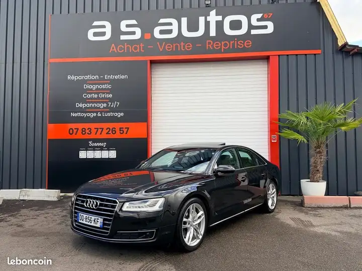 Audi A8 Phase 2 Berline 3.0 TDI 258 CV QUATTRO TIPTRONIC BOITE AUTO/ pack luxe, berline, noir, 16 cv, 5 portes, première mise en circulation le 02/04/2015.