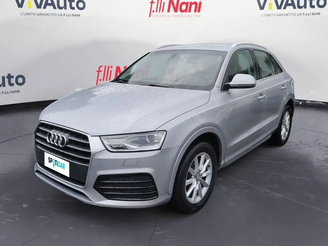 Si vende Audi Q3 2.0 TDI 120 CV Business adatta anche per neo patentati e con 1 anno di garanzia Spoticar (copertura dai marchi Citroen, Peugeot e Opel, dove vengono sottoposti vigorosi controlli fino a 100 punti). Abbiamo la possibilità di estendere la garanzia fino ad un massimo di 4 anni oltre ad avere la nostra garanzia di conformità con l’attestazione dei controlli e del chilometraggio. Veicolo già sanificato in perfetto stato, sia di motore che di interni ed esterni, tagliandata regolarmente. Per informazioni sul veicolo si può chiedere del nostro Venditore MAURO SIMONE, tel. 389/6496810 oppure contattando in sede. Orari di Apertura Lun-Ven 9.00-12.30 / 15.00-19.00. Sab 9.00-12.30 / 15.00-19.00. Inoltre facciamo anche servizio a domicilio. Importo finanziabile, si accettano permute, possibile visionare e provare l` auto presso la nostra concessionaria F.lli Nani s.r.l. via Oliveti 53, 54100 Massa.
