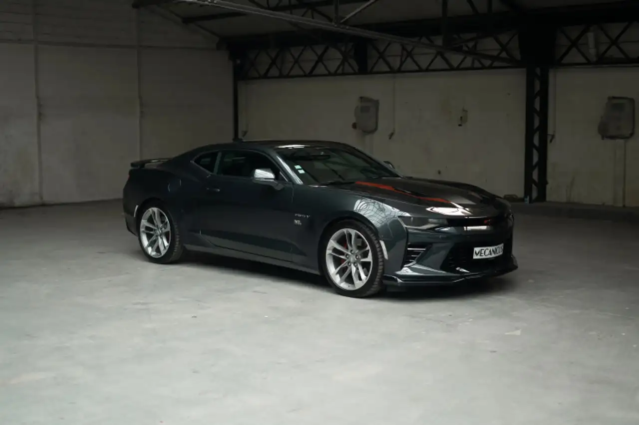 Livrée neuve en Allemagne en 2019, cette Camaro est un 3e main. Importée en France en mai 2022, elle totalise aujourd?hui 31 500 km. Entretien régulier, dont le dernier réalisé en mai 2025 (facture fournie).brbrIl s?agit de l?édition 50e anniversaire ?Fifty?, une version rare au style affirmé. Animée par un V8 6.2 développant 453 ch, cette icône américaine offre un tempérament sauvage. Configurée en teinte Nightfall Grey métallisé, elle conjugue look musclé et équipements modernes.brbrDotée des sièges chauffants et ventilés, d?un système audio BOSE et d?une caméra de recul, elle dispose d?un historique d?entretien clair, avec carnet tamponné et factures. Un exemplaire collector, aussi désirable à collectionner qu?à conduire.brbrEquipement optionnel : brSièges chauffants & ventilésbrSystème son BOSEbrCaméra de reculbrbrListe des entretiens : br05/2019 - 6 767 kms - Autohaus Kramm GmbHbr05/2020 - 8 330 kms - Autohaus Kramm GmbHbr11/2022 - 19 263 kms - Garage du Lacbr05/2025 - 31 500 kms - Garage du LacbrbrLe véhicule est couvert par un contrat de garantie Triomphe Essentielle 6 mois avec plafond de 5 000¤. Extension de durée (12 ou 24 mois) et/ou de plafond (10 000¤ ou 20 000¤) possible.brbrL'auto est visible à Paris ou sur le site de Mecanicus pour plus de photos. Nos prix s'entendent TVA et malus inclus, le coût de la carte grise reste à la charge de l'acheteur.brReprise et financement possibles.brbrL'équipe MECANICUS