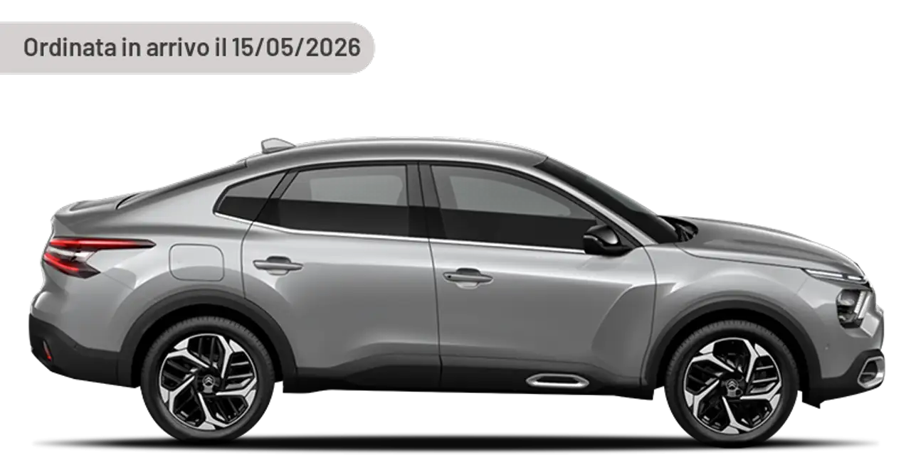 My Citroën Drive Plus, Touchscreen HD da 10'' con navigazione, Pack Drive Assist 4, Quadro strumenti da 7'' digitale a colori, Tappetini anteriori e posteriori, Telecamera di retromarcia con Top Rear Vision e assistenza al parcheggio, Tergicristallo automatico, Adaptive Cruise Control con funzione Stop&Go, Chiusura centralizzata, Correttore assetto fari, Appoggiatesta posteriori, Servosterzo, Indicatore temperatura esterna, Autoradio, Cambio automatico a 6 marce, Retrovisori ripiegabili elettricamente, Climatizzatore automatico bi-zona, Tetto in tinta carrozzeria, Vetri posteriori e lunotto oscurati, Keyless Access & Start, Kit riparazione pneumatici, Alzacristalli elettrici e sequenziali anteriori e posteriori, Retrovisore interno fotocromatico, Maniglie porte esterne colore carrozzeria, Accensione automatica dei fari, Airbag a tendina, Airbag frontali, Assistenza alla partenza in salita, Calotte retrovisori esterni in Nero Lucido, Console centrale "alta" con bracciolo anteriore, 2 portabicchieri e portaoggetti, Panchetta posteriore frazionabile 2/3 - 1/3, Presa USB (Tipo A) in seconda fila, Prese USB (2) in prima fila (1 tipo C + 1 tipo A), Rilevamento sotto gonfiaggio, Sensori di parcheggio posteriori, Specchietti esterni elettrici e riscaldati, Spia cintura di sicurezza conducente e passeggero non allacciata, Volante in pelle regolabile in altezza e profondità con comandi integrati, Pianale del bagagliaio regolabile su due posizioni, Tasca portamonete sul retro dei sedili anteriori, Telecamera di retromarcia, Sistema di sorveglianza dell'angolo morto (SAM), Retrovisori esterni ripiegabili con disappannamento elettrico con luce ingresso/uscita, Volante in pelle pie