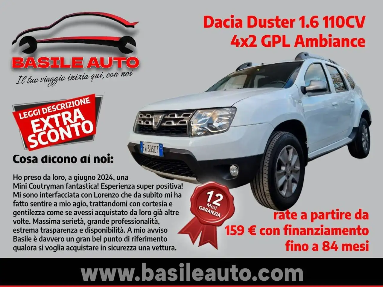 Stai pensando di comprare questa Dacia Duster? Chiedi la targa al venditore e controlla con CARFAX incidenti e danni pregressi, chilometraggio, revisioni ed altre informazioni.