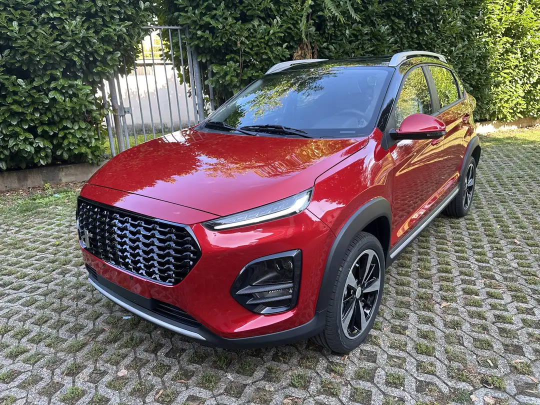 Vettura di colore rosso metallizzato con l'interno in pelle Nera equipaggiata con: