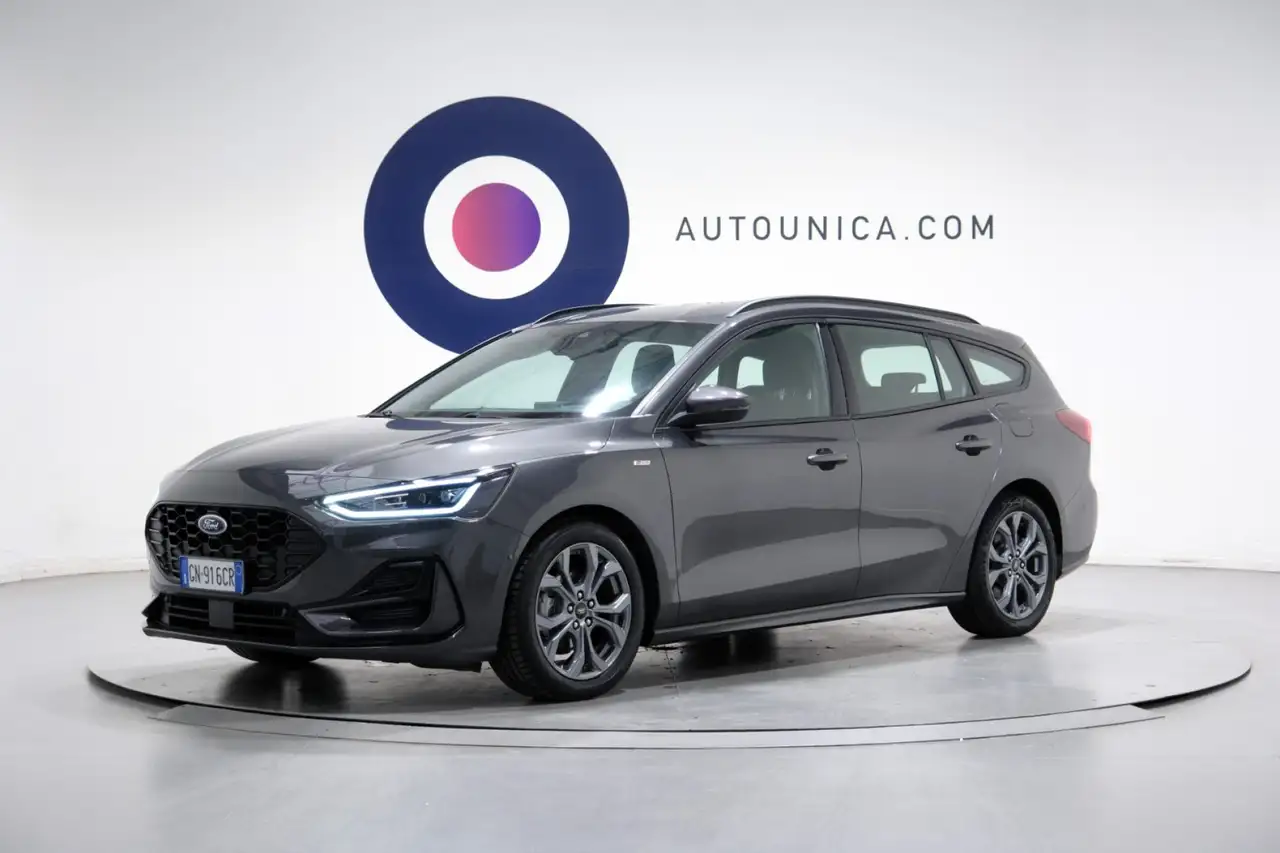 <b data-start="117" data-end="179">Ford Focus 1.0 EcoBoost Hybrid 125 CV SW ST-Line del 2023: una station wagon moderna, sportiva ed efficiente, pensata per chi vuole spazio e dinamismo senza rinunciare alla tecnologia. Il motore 1.0 EcoBoost Hybrid da 125 CV garantisce consumi contenuti e una guida brillante, grazie al supporto del sistema mild hybrid che ottimizza accelerazione e fluidità.Gli interni, curati nell’allestimento ST-Line, offrono un ambiente sportivo e confortevole: climatizzatore automatico, volante in pelle, bracciolo, infotainment completo con touch screen, Bluetooth, USB e navigatore integrato. L’abitacolo è spazioso e versatile, ideale per la famiglia e per chi viaggia spesso.La dotazione di sicurezza e assistenza alla guida è di livello superiore: ABS, ESP, frenata d’emergenza assistita, mantenimento corsia, riconoscimento segnali stradali, monitoraggio stanchezza, sensori di parcheggio anteriori e posteriori, telecamera posteriore, Blind Spot Monitor e Adaptive Cruise Control. I fari Full LED offrono visibilità eccellente in ogni condizione.Con il pacchetto ST-Line, cerchi in lega dedicati e un design più aggressivo, questa Focus SW unisce praticità, comfort e sportività, rivelandosi la scelta ideale per chi cerca una vettura completa, attuale e ricca di contenuti.