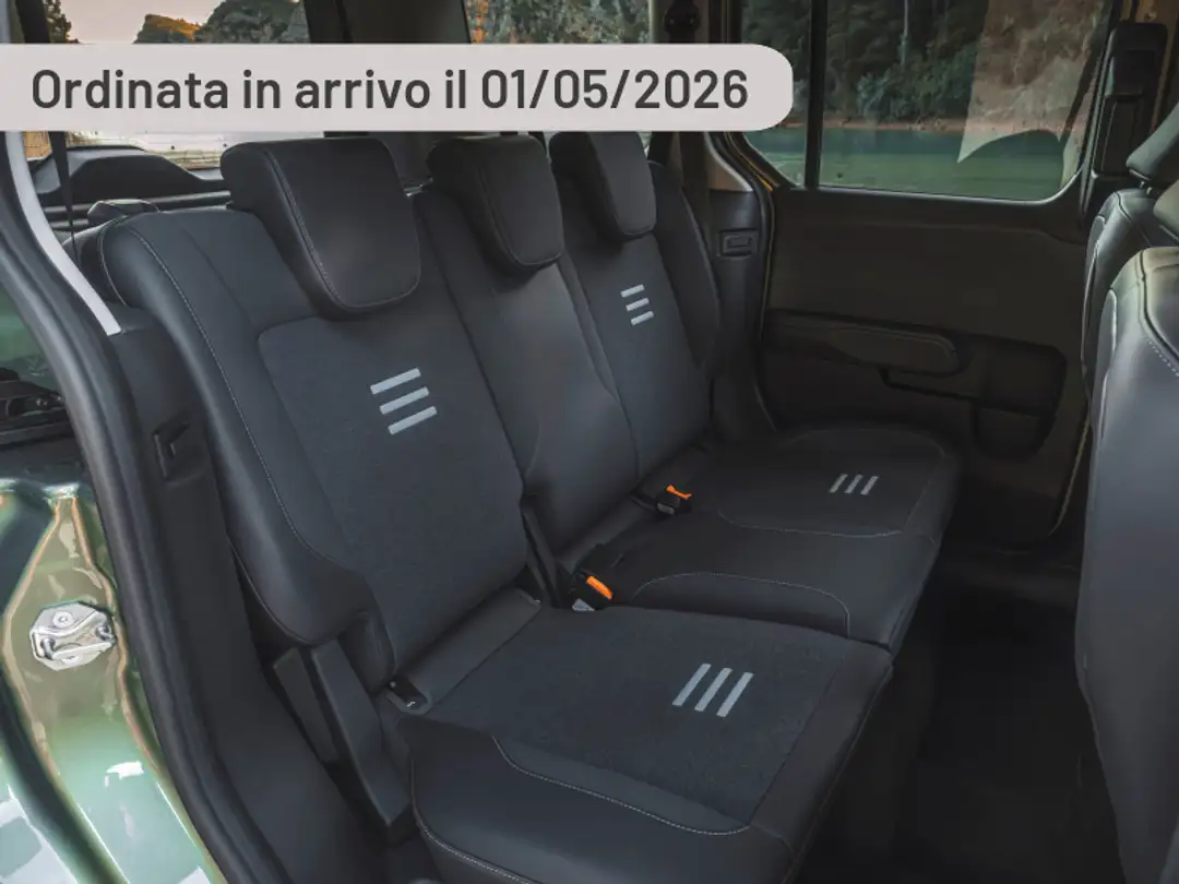 Vetro portellone posteriore con sbrinatore e tergicristallo, Volante Sensico Premium, Caricabatterie integrato AC 11 kW - On Board Charger, e-Call - Sistema di chiamata di emergenza, Avviso cambio corsia, Airbag a tendina lato guidatore/passeggero, Caricabatterie DC fino a 100 kW, Cavo di ricarica trifase 32A di tipo 2, Cerchi in lega da 17" Silver & Black, Griglia frontale E-Tourneo con LED coast to coast, Parking Pack, Sensori di parcheggio posteriori, Sensori di parcheggio anteriori, Digital Rear View Camera, Porte USB anteriori e posteriori (2+2), Presa 12V anteriore e bagagliaio, Riscaldatore ausiliario - PTC heater, Tecnologie Ford Co-Pilot, Cruise control, Driver Alert - monitoraggio attenzione conducente, Lane Keeping Aid, Traffic Sign Recognition, Pre-Collision Assist (Sistema di frenata automatica pre-collisione e riconoscimento pedone), Intelligent Speed Assistance (ISA), Winter Pack, Sedili anteriori riscaldabili, Volante riscaldabile, Parabrezza riscaldabile, Chiave con transponder, Specchietto retrovisore interno con oscuramento automatico, Chiusura centralizzata, Correttore assetto fari, Immobilizzatore, Pretensionatore cinture, Appoggiatesta posteriori, Volante regolabile, Maniglie portiere in tinta carrozzeria, Kit riparazione pneumatici, Airbag frontali guidatore e passeggero, Indicatore temperatura esterna, Fari fendinebbia, Start & Stop, Hill Start Assist (Assistenza alla partenza in salita), Porte posteriori scorrevoli, Servosterzo, Luci diurne a LED, Sensore luci, Alzacristalli anteriori elettrici "one-touch" salita e discesa, ESP - Controllo elettronico della stabilità, ABS - Sistema di frenata antibloccaggio con EBD, Luci di cortesia, Alzacristalli posteriori elettrici, Bracciolo sedile guida, Sedile passeggero con regolazione manuale a 4 vie, Keyless Entry&Start, Cambio automatico, Ford Easy fuel (sistema di rifornimento senza tappo), Airbag laterali lato guida e passeggero, Luci posteriori a LED