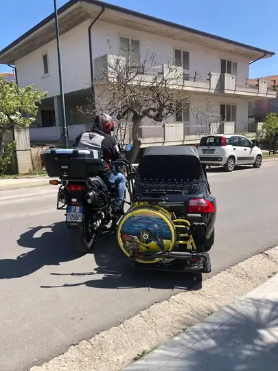 Sidecar trasformato x portare anche persone con disabilità infatti ha un portabagagli in più per il trasporto della carrozzina