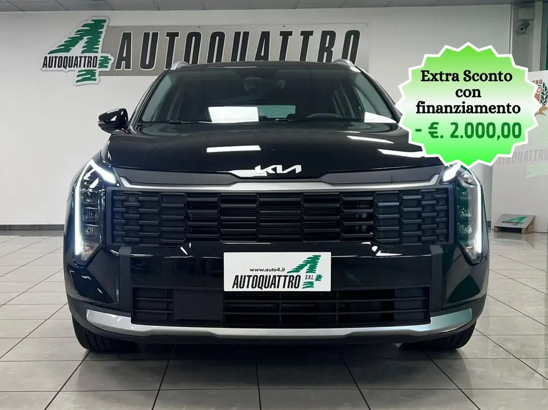 KIA SPORTAGE AT STYLE KM 0 prezzo promo € 35.600,00 (passaggio di proprietà e bollo da aggiungere al prezzo finale proposto) a fronte dell’adesione al finanziamento. Es. Finanziamento: Valore del bene €. 37.600,00. Anticipo € 12.600,00 (di cui €. 10.600,00 del cliente) – Importo richiesto €. 25.000,00 Importo finanziato €. 27.691,31. Piano da 84 rate mensili da €. 459,00. Servizi assicurativi aggiuntivi inclusi nell’offerta, unico premio anticipato Furto e Incendio, Valore a nuovo (12 mesi su usato e 36 mesi su nuovo), Cristalli, Garanzie Complementari, Assistenza, Eventi Naturali, Eventi Speciali: Atti Vandalici e Eventi, Sociopolitici per 24 mesi premio unico anticipato €. 2.291,31. Spese pratica € 400,00. Importo Totale dovuto dal consumatore € 38.556,00; imposta bollo applicata al contratto € 16,00; TAN FISSO: 9,95%, TAEG 11,225 %. Salvo approvazione finanziaria. Auto Quattro srl opera quale intermediario del credito per l'istituto di credito erogante, non in esclusiva. KIA SPORTAGE KM 0 consumo WLTP l/100km (km/l)): Low 6,0 (16,67) - Medium 4,9 (20,41) - High 3,9 (25,64) - ExtraHigh 6,6 (15,15) - Combo 5,5 (18,18) emissioni di CO2 WLTP g/km: Low 135,9 - Medium 104,3 - High 103,4 - ExtraHigh 148,4 - Misto/Combo 124,0. Salvo approvazione finanziaria. Prospetto informativo disponibile presso Auto Quattro srl.