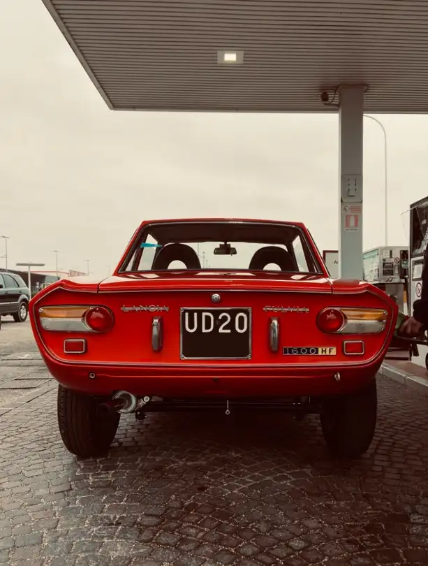 Lancia Fulvia Coupe HF Lusso 1600 del 1971. Colore originale Rosso Corsa. Monta fanaliera da rally Cibié, volante da corsa Ferrero e cinture 4 punti Sabelt.