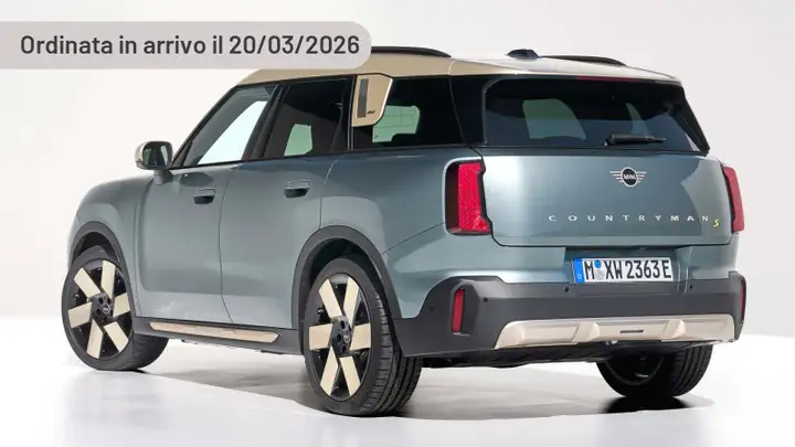 Interni in Tessuto/Ecopelle | Grey/Blue, Sospensioni standard, Volante riscaldato, Maniglie delle portiere integrate nella carrozzeria, Volante in pelle artificiale regolabile in altezza e in profondità, Alette parasole anteriori con specchietto di cortesia, Doppia chiave con comandi a distanza con funzione memoria, Smartphone Integration (Apple CarPlay e Android Auto), Cruise Control con funzione freno, Pacchetto luci interne, Loghi MINI in Vibrant Silver, Cavo di ricarica Fast Charging (Mode 3) per Ricarica Pubblica, Cerchi in lega da 17'' Aero Spoke Grey, MINI Charging Card, Assistente Personale Intelligente, E-sim personale, Sistema di navigazione MINI con RTTI in caso di guida attiva, Rivestimento del padiglione in tessuto grigio chiaro, Chiave con transponder, Chiusura centralizzata, Correttore assetto fari, Immobilizzatore, Pretensionatore cinture, Tergilunotto, Appoggiatesta posteriori, Sedile guida regolabile in altezza, Vetri elettrici anteriori, Servosterzo, Indicatore temperatura esterna, Sedile posteriore sdoppiato, Vetri elettrici posteriori, Tappetini in velluto, Controllo elettronico della trazione, Disattivazione airbag passeggero, Autoradio, Bluetooth, Riconoscimento segnali stradali, Frenata automatica di emergenza, Indicatore di pressione pneumatici, Tetto in tinta carrozzeria, Sedili standard, Climatizzatore automatico bizona, Sensore pioggia, Riconoscimento pedone, Radio digitale DAB, TeleServices, Cambio automatico, Legal Emergency Call, Griglia anteriore con cornice nera, Crash sensor (sblocco automatico chiusura portiere in caso di incidente), Vernice metallizzata Melting Silver III, Barre portatutto nere sul tetto, Bulloni antifurto per cerchi, Sistema di detezione distrazione del guidatore, Airbag frontali e laterali per guidatore e passeggero anteriore, Airbag laterali per la testa per prima e seconda fila di sedili, Assistente di attenzione alla guida, Attacchi Isofix per