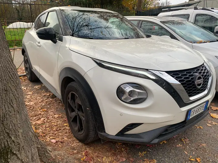 Questo SUV Nissan Juke, con carrozzeria bianca metallizzata e interni in tessuto nero, garantisce ampi spazi per 5 passeggeri su 5 porte, rendendolo adatto a famiglie o a chi ha bisogno di versatilità e comfort. L’abitacolo è ben insonorizzato per viaggi sereni e silenziosi.