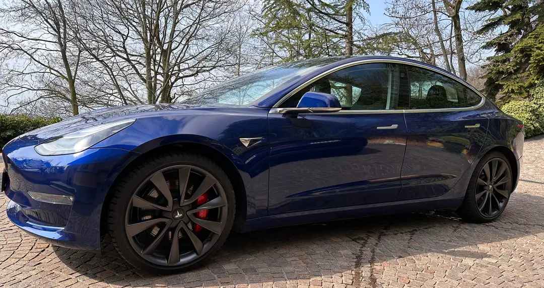 Vendo Tesla Moderl 3 Performance. Blu Metallizzato Cerchi da 20 pollici Interno in pelle nera Autopilot di serie