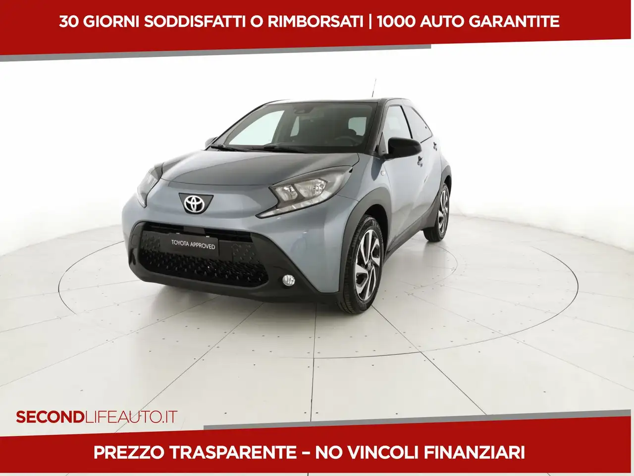 Stai pensando di comprare questa Toyota Aygo X? Chiedi la targa al venditore e controlla con CARFAX incidenti e danni pregressi, chilometraggio, revisioni ed altre informazioni.