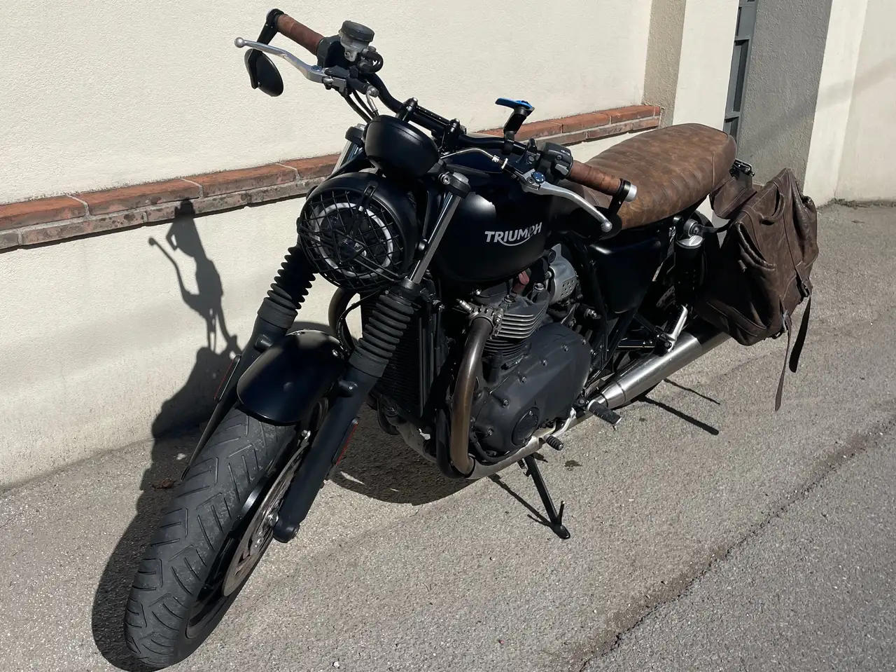 Triumph Street TwinNero opaco & pelle marrone Cafe Racer Custom