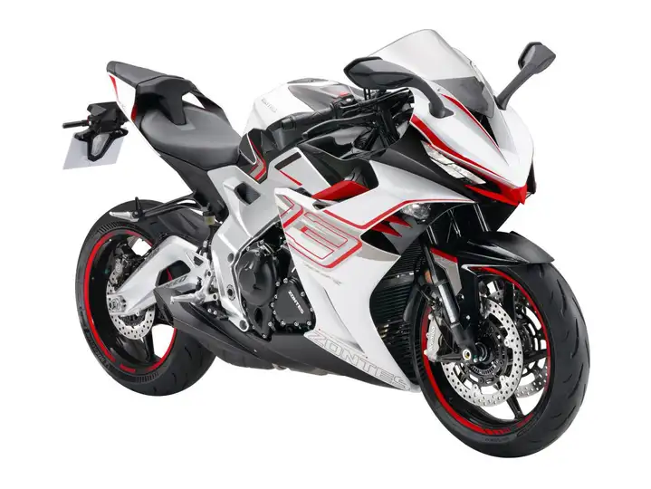 La nuova Super Sportiva Zontes: 699 cc di pura potenza, da 0 a 100 in 3 secondi, 257 km/h di velocità massima – un concentrato di adrenalina, dalla strada alla pista. Primo motore 3 cilindri made in Zontes! Ad elevato rapporto di compressione 13:1 e in grado di erogare una potenza di 70kW (95 CV) a 11.500 giri motore e una coppia di 74,4Nm a 8.500 giri. Il telaio della moto è realizzato interamente in pressofusione di alluminio, una soluzione tecnica che combina leggerezza e resistenza strutturale. Questo design garantisce un equilibrio ottimale tra maneggevolezza e stabilità. La scelta dell’alluminio pressofuso assicura un peso ridotto senza compromessi in termini di robustezza, migliorando l’esperienza di guida e l’efficienza complessiva del veicolo. La nuova ZT703-RR è equipaggiata con sospensioni Marzocchi interamente regolabili, progettate per garantire il massimo controllo e grip in ogni condizione di asfalto. Grazie alla qualità e all’innovazione di questo sistema il pilota può personalizzare la configurazione per ottenere prestazioni ottimali in ogni situazione di guida. Impianto frenante Brembo. Quick Shifter Monodirezionale. Doppia modalità di guida ECO e Sport. Frizione antisaltellamento. ABS a doppio canale. Sistema TCS standard. Sistema di controllo KEYLESS 3.0.