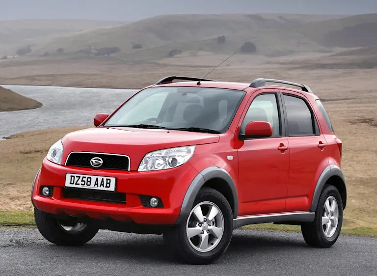 - Daihatsu Terios: la prima versione di questo fuoristrada compatto ha raggiunto i concessionari tedeschi nel 1997 in sostituzione della Daihatsu Rocky. Questo mini SUV, lungo poco meno di quattro metri e largo appena 1,70 metri, è stato rielaborato negli anni di produzione 2000 e 2006. I motori da 1,5 litri nella versione “top” Daihatsu Terios S a trazione integrale consumavano mediamente 8,1 litri (con 191 g/km di CO2). Un differenziale autobloccante e un dispositivo di controllo della trazione di serie provvedevano a rendere del modello a trazione integrale idoneo per la marcia fuori strada.