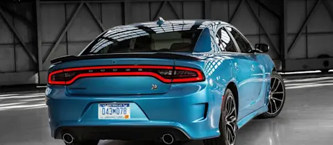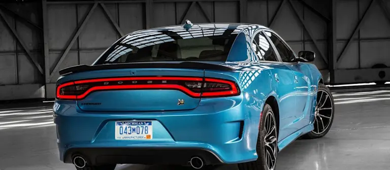 Il lungo posteriore è degno erede delle Charger progenitrici: si trova infatti il classico lunotto tagliato che si raccorda con uno spoiler pronunciato sulla coda. Al posteriore trova spazio una personalissima firma luminosa a LED che circonda il fascione con al centro la scritta Dodge. Nella parte inferiore si trovano i due scarichi cromati che fanno sentire l’inconfondibile sound dei generosi motori V6 e V8.