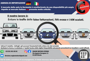 Agenzia di Importazione 🇩🇪 🇮🇹 🚗 Tu scegli l'auto in Germania e noi la consegniamo direttamente a casa tua❗️ 👉 Il mercato dell'auto in Germania è caratterizzato dalla disponibilità generalmente più ampia rispetto al mercato italiano. Con la nostra consulenza ti accompagniamo, in totale sicurezza, nel tuo percorso di acquisto. ✅ per acquistare in tranquillità un’auto importata ...perché a noi le truffe non piacciono 😏 “GESTIONE PRATICHE ESTERE” Questo servizio GARANTISCE L'ACQUISTO SICURO e fornisce TUTTO il supporto NECESSARIO : 🆗Protezione rischio truffa 🆗Protezione pagamento 🆗Ricerca ragionevole certezza chilometrica 🆗Selezione e analisi del fornitore 🆗Selezione e analisi del veicolo 🆗Ricerca manutenzione, cronologia interventi 🆗Servizio custodia e trasporto con copertura assicurativa conto terzi 🆗Autenticità documentazione fotografica e video 🆗Verifica autenticità documenti esteri 🆗Traduzione documenti esteri 🆗Gestione aspetti fiscali (nel pieno rispetto della legge e del corretto regime IVA) 🆗Gestione ed organizzazione appuntamento con Agenzia delle Entrate per espletamento pratica fiscale 🆗Garanzia ufficiale 🆗Servizio finanziamento 🆗Servizio preconsegna (controlli diagnosi lavaggio e sanificazione) Siamo sempre al tuo fianco 🤝 ⚠️Che auto vuoi? 👍🏻 ✅ Noi la importiamo 🚗 🚕 🚙 📍📍📍 La nostra agenzia fa parte della community “NON PRENDERMI PER IL CHILOMETRO” la più grande Community di rivenditori e concessionari d'auto che credono nei valori dell'onestà, non scalano i chilometri e che si impegnano a lavorare correttamente nel rispetto del Codice del Consumo. Non Prendermi per il Chilometro è l'unica fonte autorevole riconosciuta dal Parlamento Europeo per lo studio del fenomeno dei chilometri scalati ai veicoli usati. 📍📍📍 https://www.nonprendermiperilchilometro.it/parlano-di-noi
