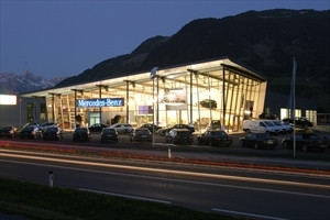 Pappas Maishofen ist Ihr kompetenter Ansprechpartner für den Vertrieb und Service von Mercedes-Benz Pkw, Transporter, Lkw sowie smart und Fuso Canter. Der ansprechende und moderne Bau direkt an der B311 wurde 2003 errichtet und verfügt über eine Rampe im Schauraum, über die ein Fahrzeug im Außenbereich in luftiger Höhe präsentiert werden kann. Die angebotenen Services umfassen die klassischen Reparaturarbeiten, Karosserie- und Lackarbeiten. Für letztere wurde am Standort eine moderne Lackieranlage installiert.