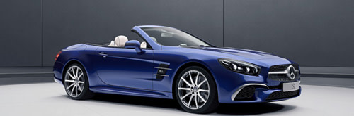 Mercedes-Benz SL, autentica leggenda tra le Roadster, acquisisce ancora più esclusività con la nuova designo Edition. Il modello speciale si distingue per eleganti elementi di design e materiali di pregio a livello di esterni ed interno. All’esterno, la verniciatura metallizzata in blu brillante, i cerchi forgiati AMG da 48,3 cm (19”) o da 50,8 cm (20”) a 10 razze ed i flic cromati sul grembialatura anteriore regalano alla vettura un aspetto caratteristico e inconfondibile. Sul lato, tra le modanature cromate, i badge con logo designo Edition indicano chiaramente lo status di eccellenza della Roadster, sempre tuttavia all’insegna di un sapiente understatement.